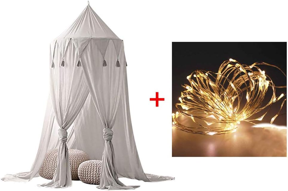 Bed canopy with lights,mosquito net kids round dome play tent,curtain bedding.